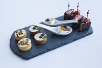 Kitsepiimajuust, valgehallitusjuust, murakamoos, kreekerid, vähisabade ja ürditoorjuustuga, korvike graavilõhesalatiga, melon Parma singiga, päikesekuivatatud tomati kreem salaami lõiguga, küülikumaksakreem kreekeriga